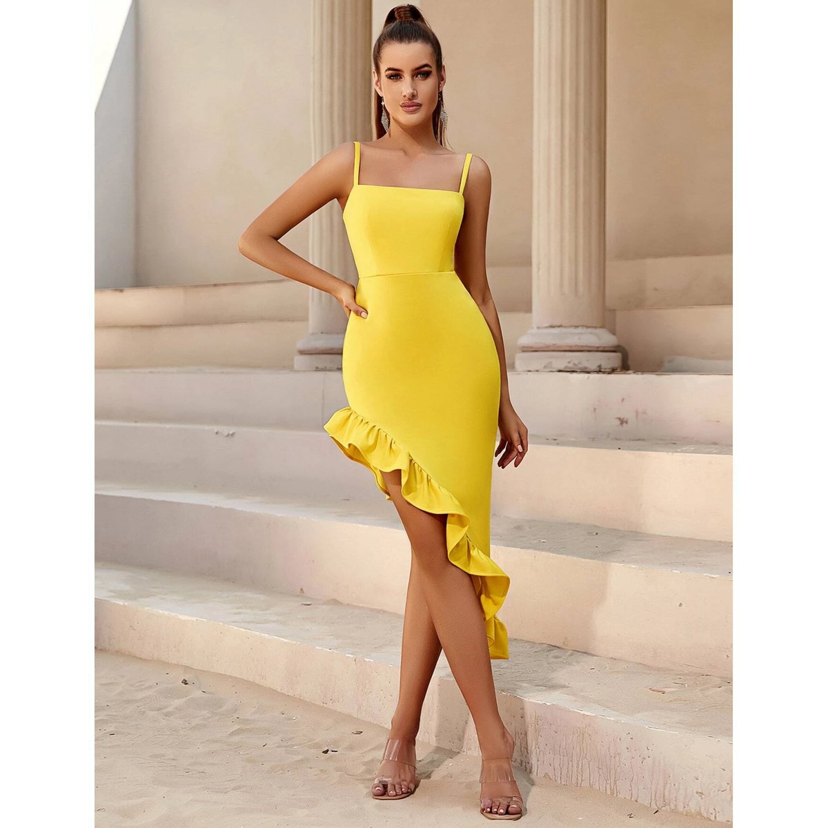 - Hermoso volante de corte asimétrico en la parte inferior.
