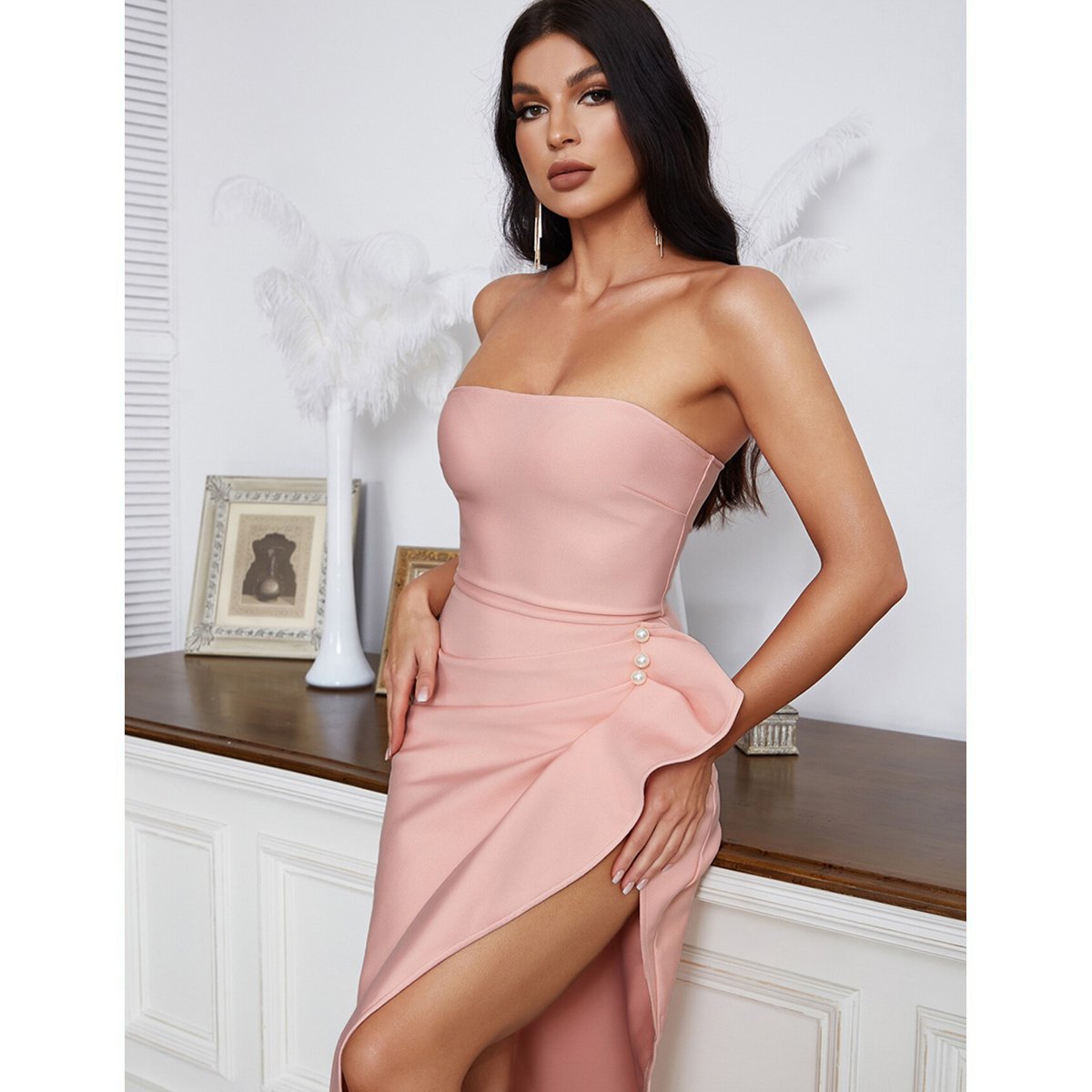 - Hecho de Poliéster y spandex, con cierre al costado.