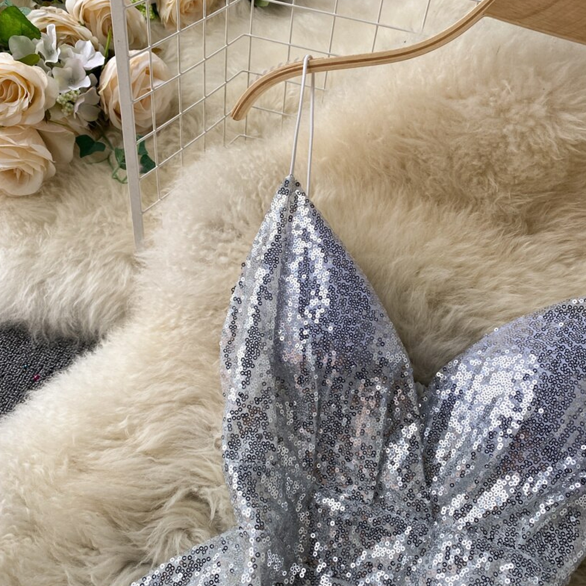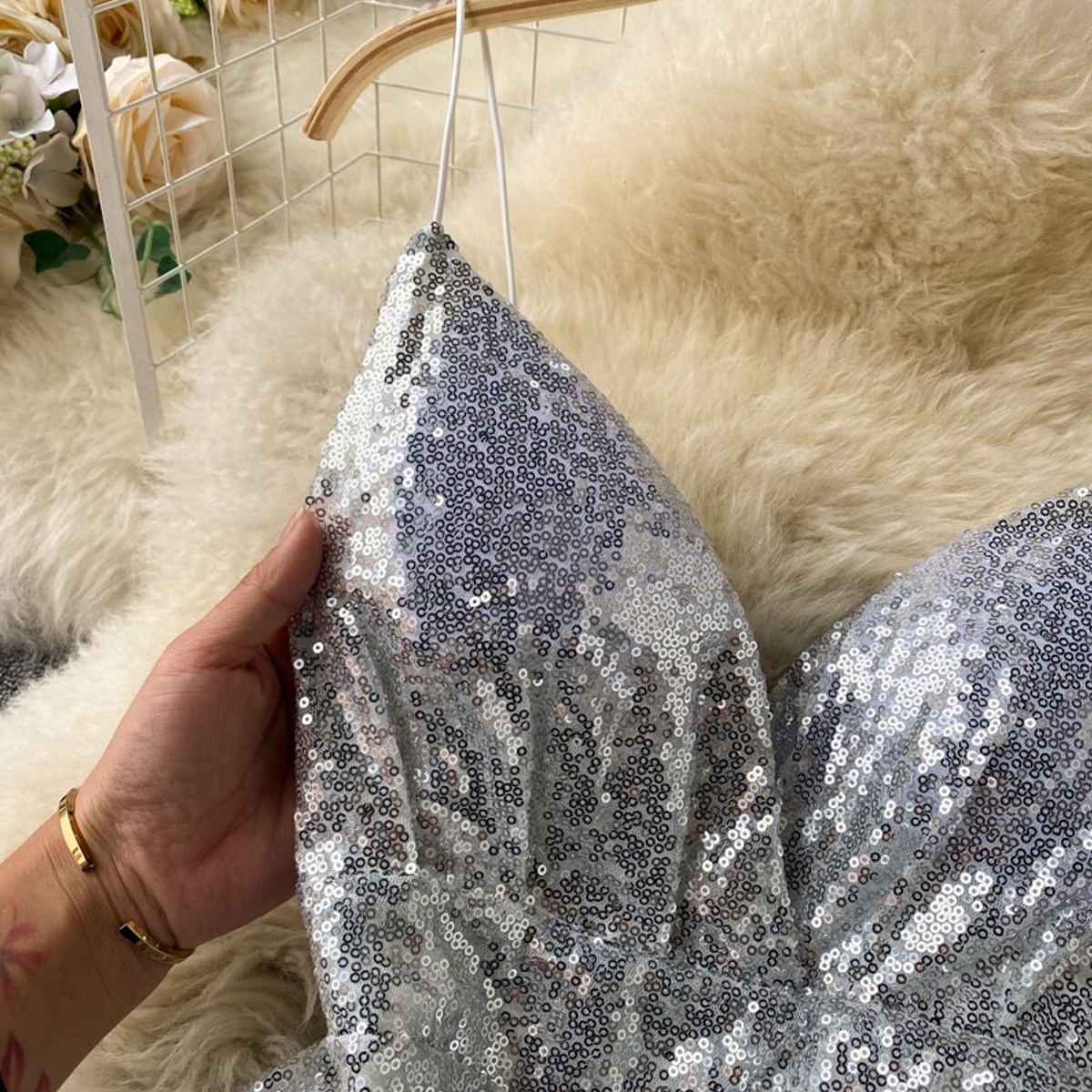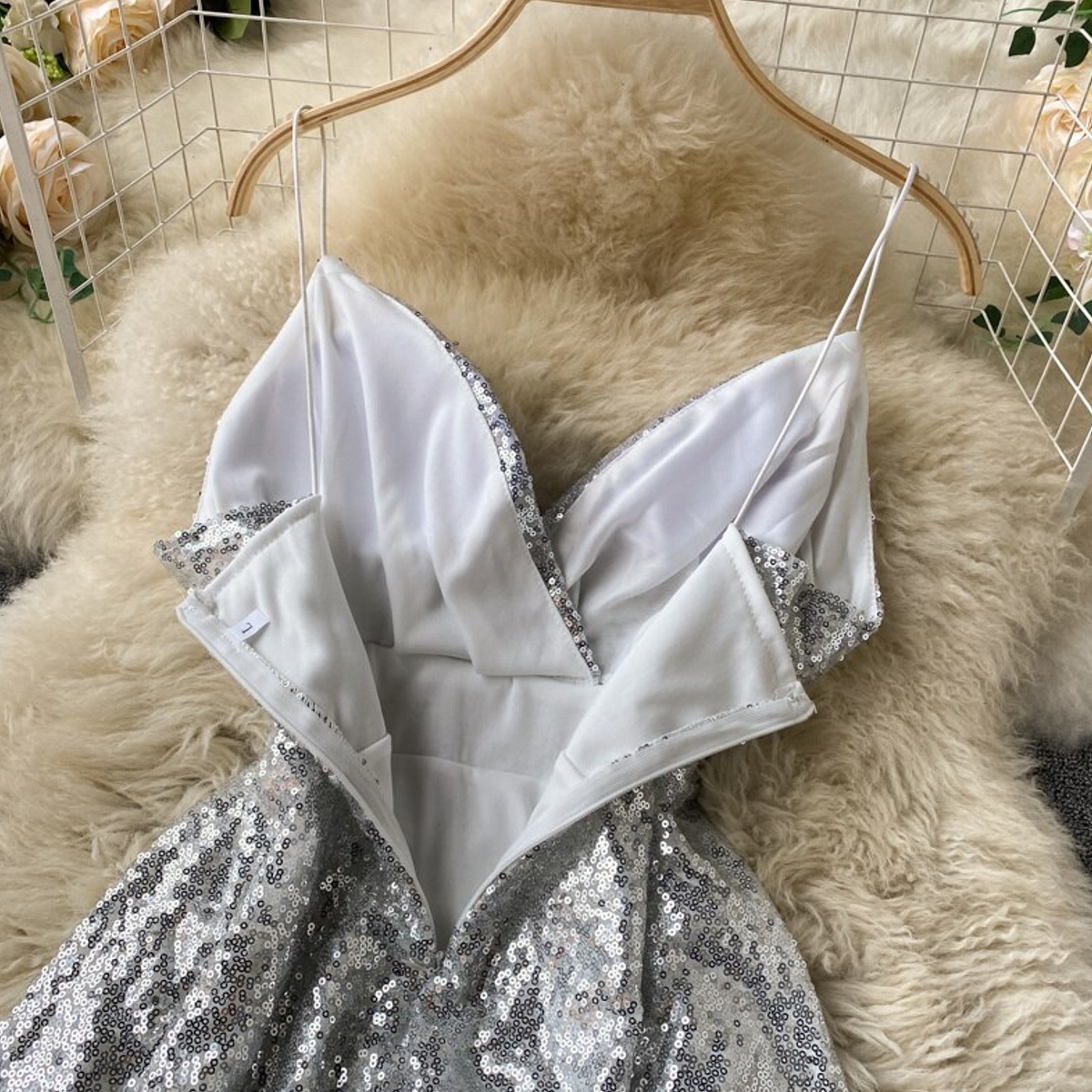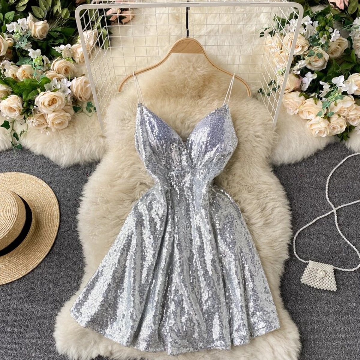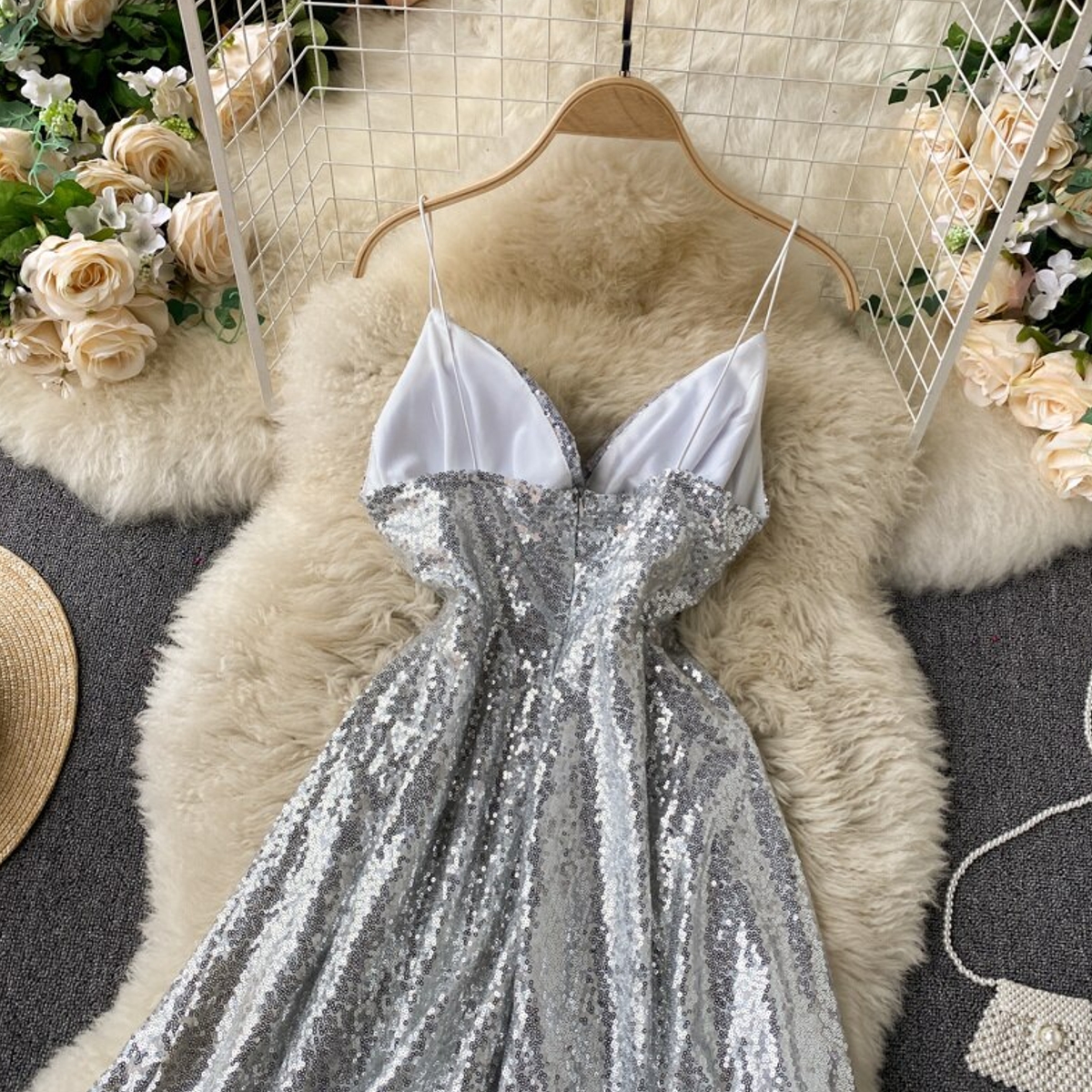 - Con cuello V, con tirante finos, ajustado en la cintura alta y sin espalda