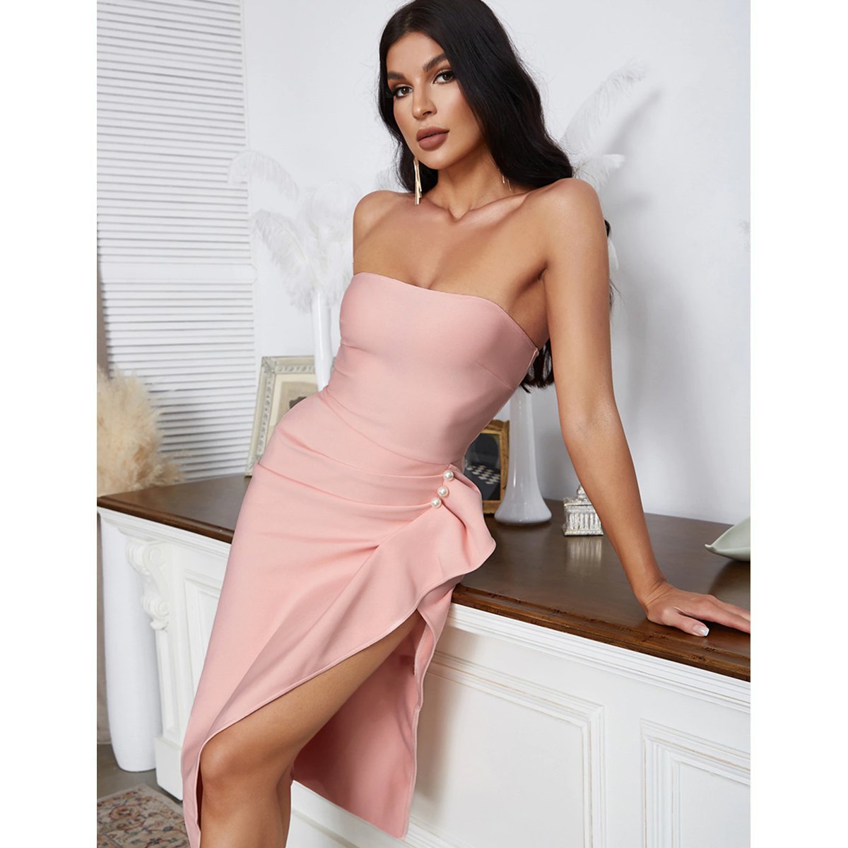 - Hecho de Poliéster y spandex, con cierre al costado.